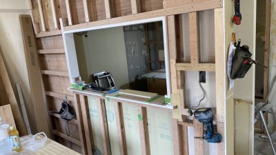写真に写っているのは、キッチンカウンター部分の開口工事。