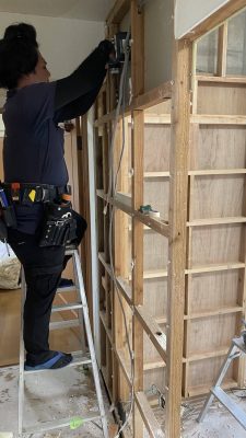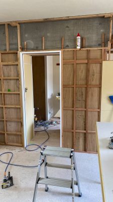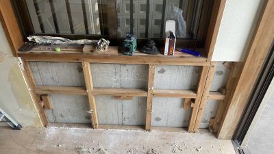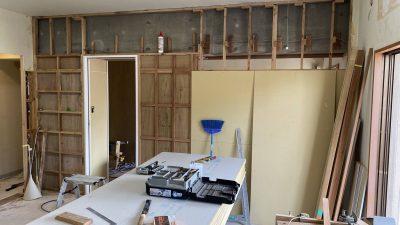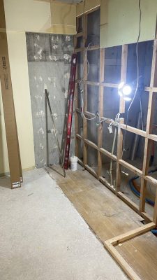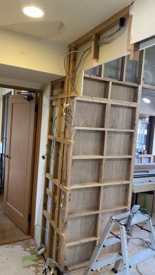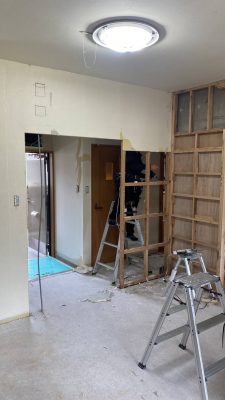 間仕切り壁を撤去した後は、新しい壁を作るための木下地を組む工程に入ります。