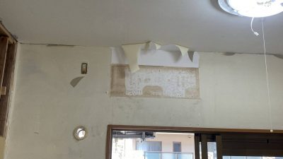 古いクロスを剥がし、パテ処理を行って平滑に仕上げることで、美しい仕上がりが実現します。
